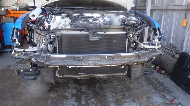 ラジエーターサポート・バンパー・補機類を元通りに組み付け、各部締付トルクを確認します。