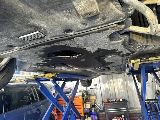 車両下部を確認すると、アンダーカバー周辺にオイルの滲みを確認。