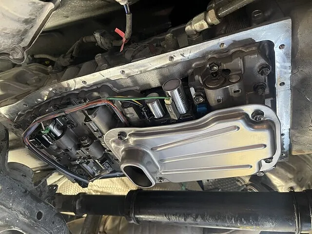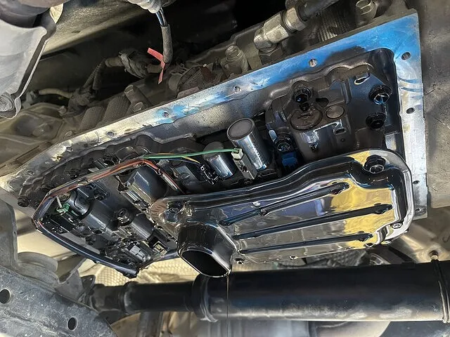 交換前にコンピューターによる作業前点検後、分解を行います。走行距離が増えるとオイルパンに汚れが溜まって、不具合や故障の原因に。