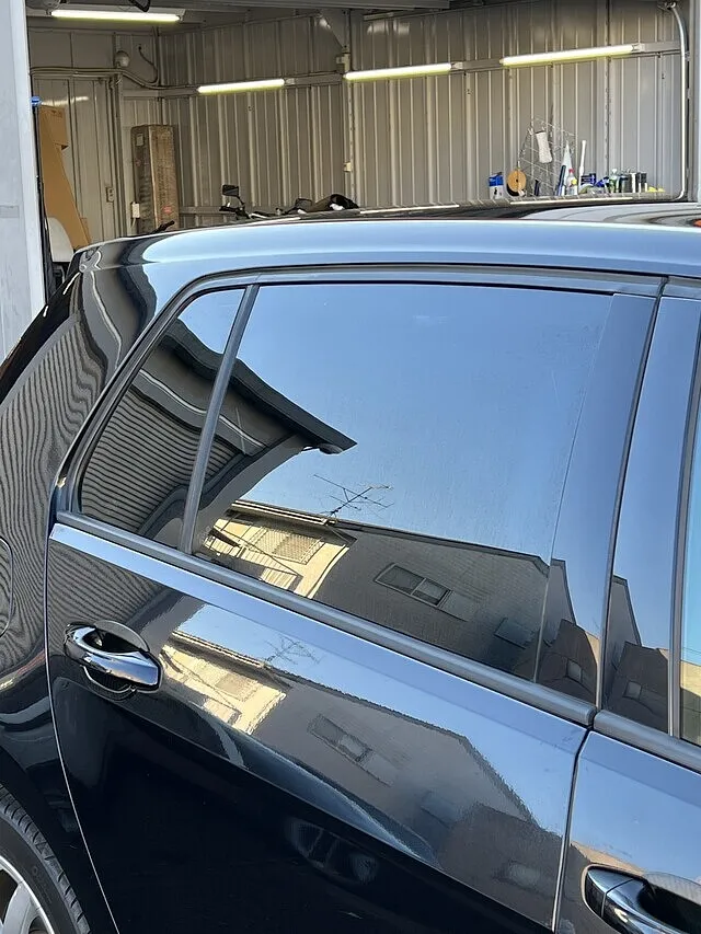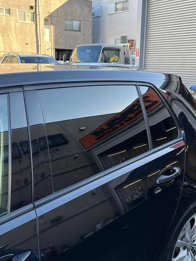 千葉県我孫子市の店舗にて、ワーゲン ゴルフへ高性能カーフィルムを施工。国家資格を持ったスタッフが丁寧に対応し、断熱性、UVカット、プライバシー保護を実現しました。